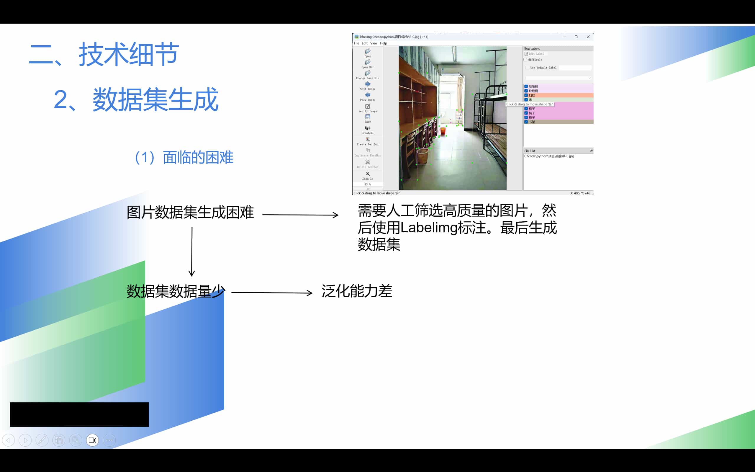 接下来,一名队友决定对每一张照片中的特定物品,进行人工框选与标签处理以满足项目需要。但工作量实在太大,到最后也没完成。