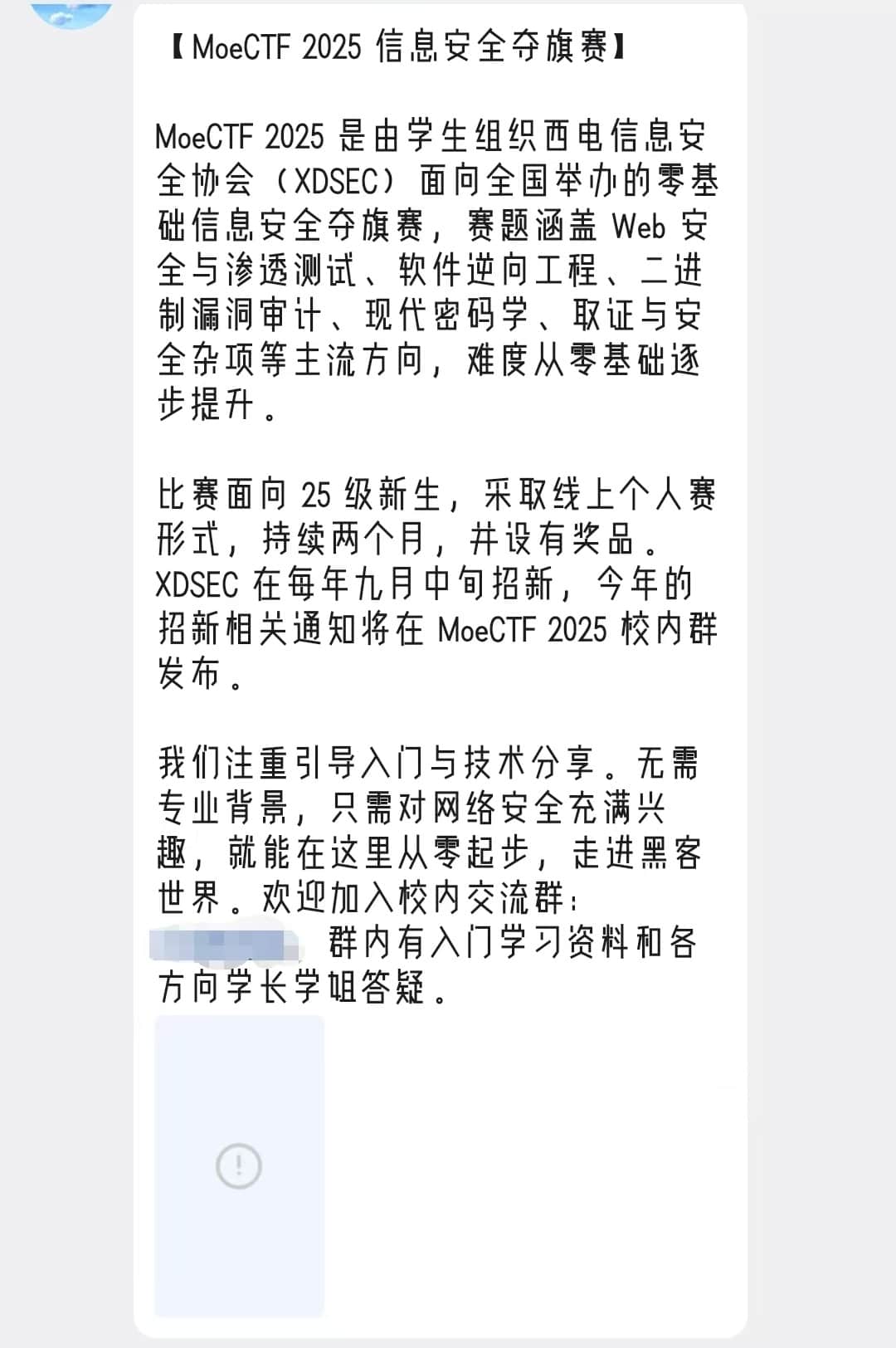 那年暑假,我在家玩的正开心,突然在QQ新生群看见了一条广告(